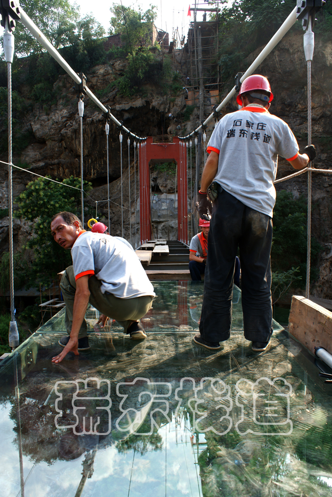 施工中的玻璃吊橋